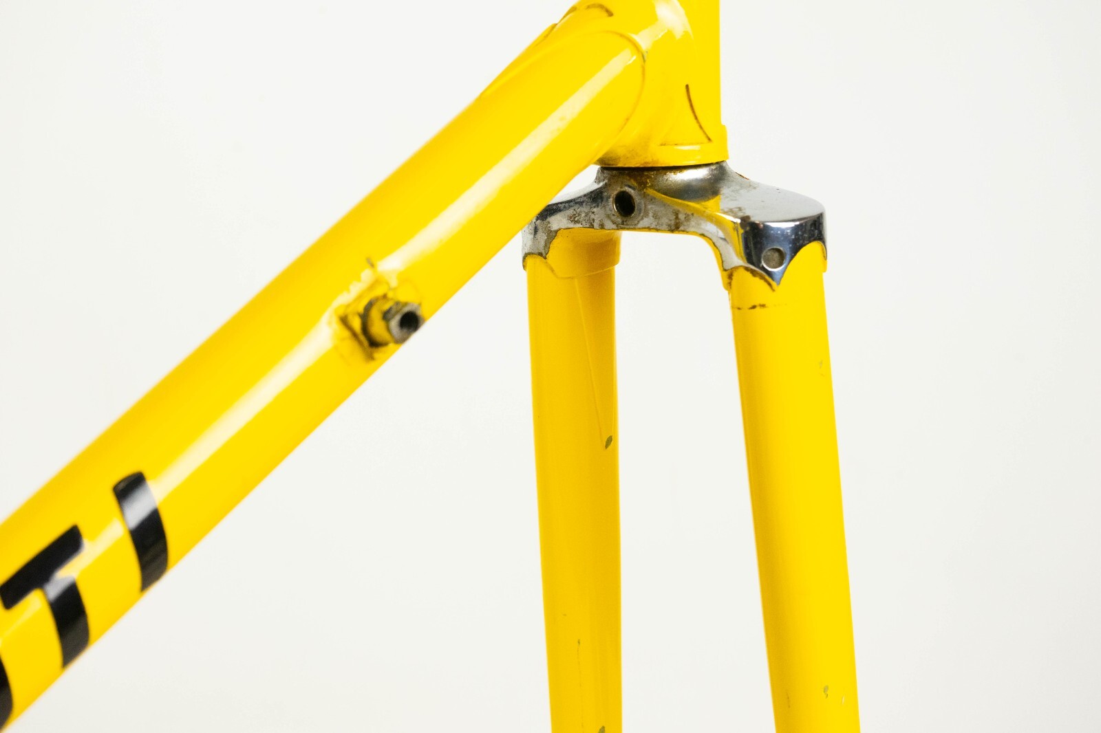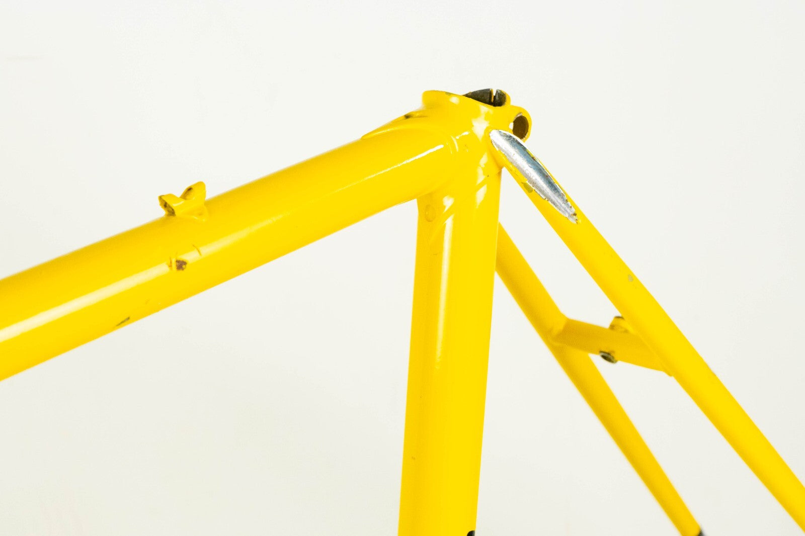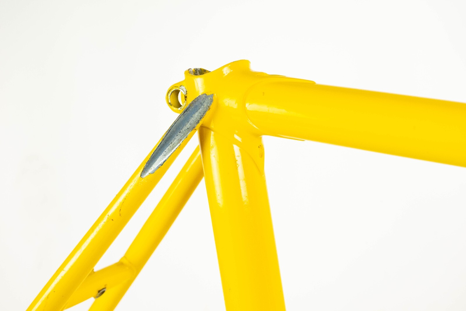 High end frame set built with particular care and with top quality materials; the tubing could be Reynolds or Columbus SL, looking at the weight, Campagnolo dropouts
