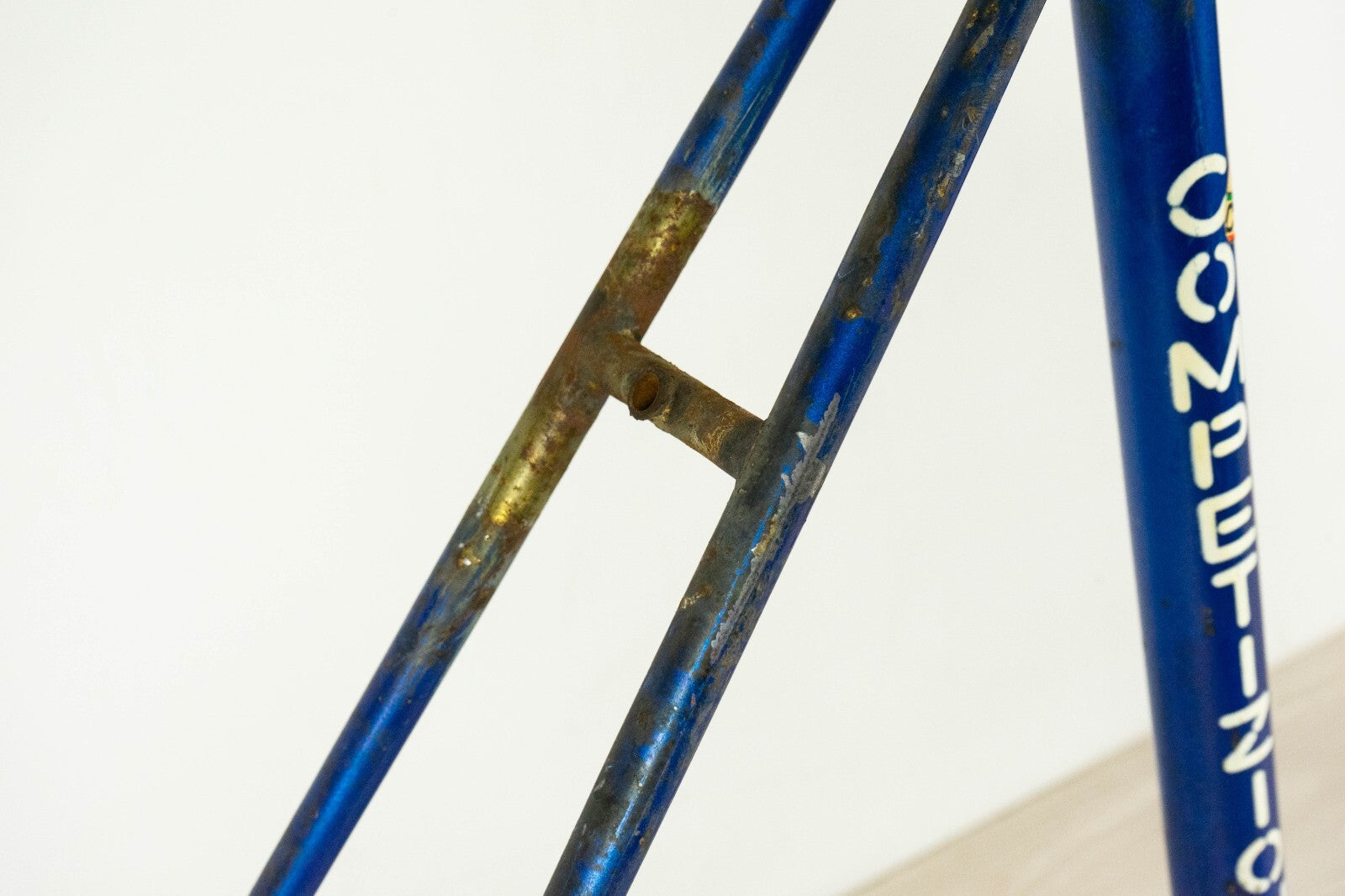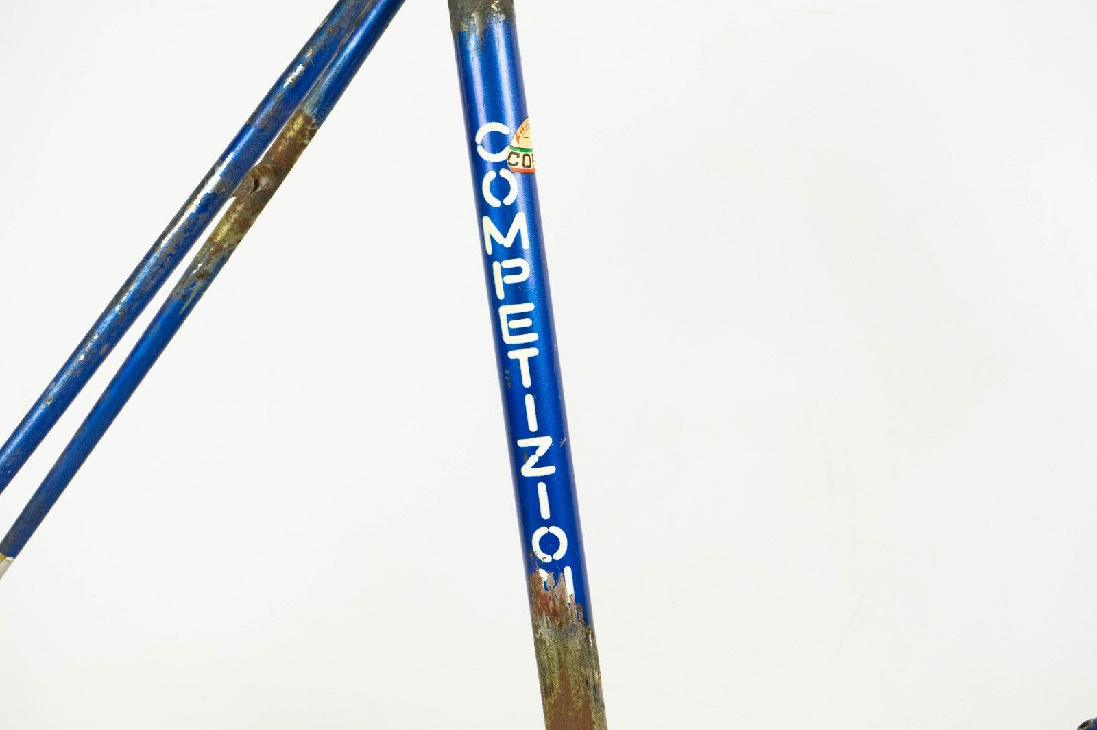 To repaint; the fork is a Coppi, not original but suitable. There is a small dent on the bottom bracket shell that will not cause any problem in riding