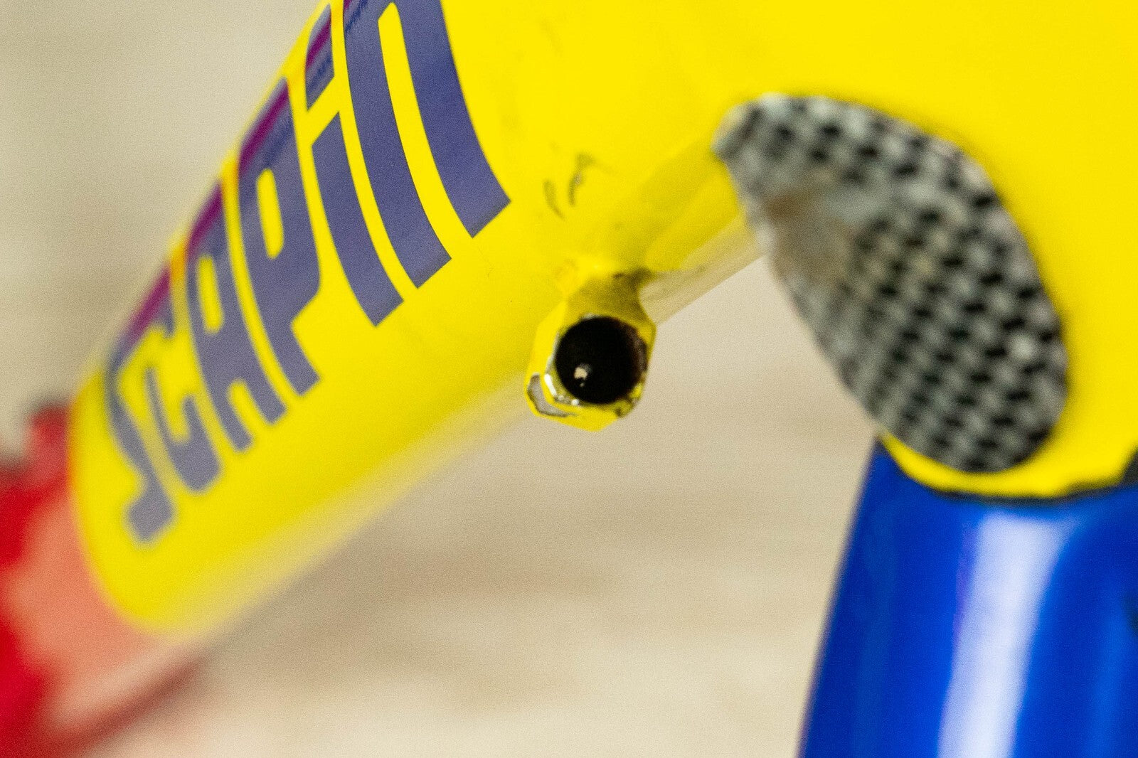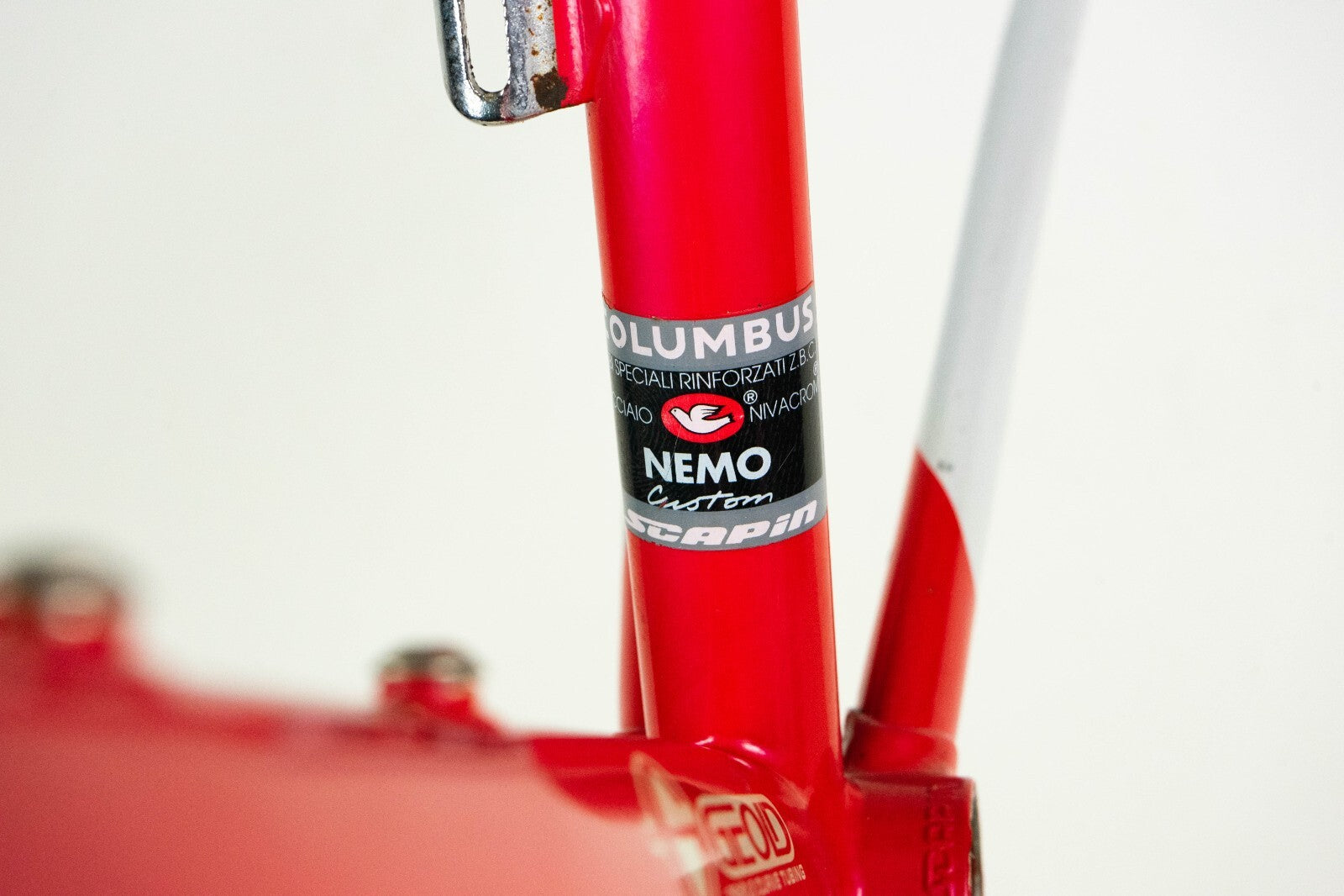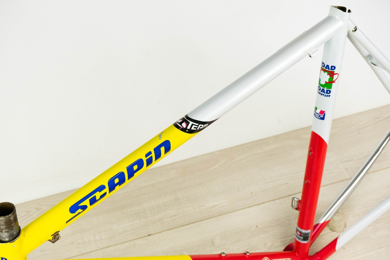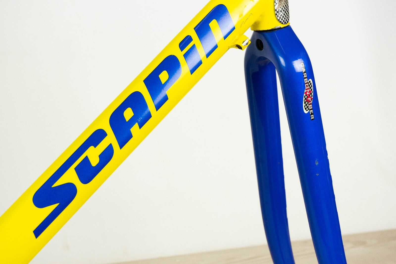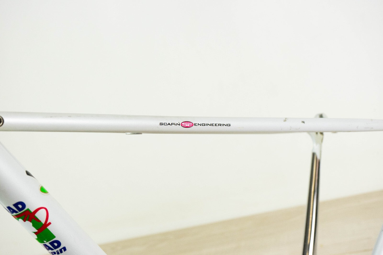 Scapin has made some of the best steel framesets of the 90s starting with the KS-Pro, then the Eos Pro Team then the EOS7 made with the Columbus Ultrafoco tubes, all designed for competitions in search of lightness, reactivity and reliability. The frame builders of these iconic frames were the Barco brothers who laters left the collaboration with Scapin and created their own brand