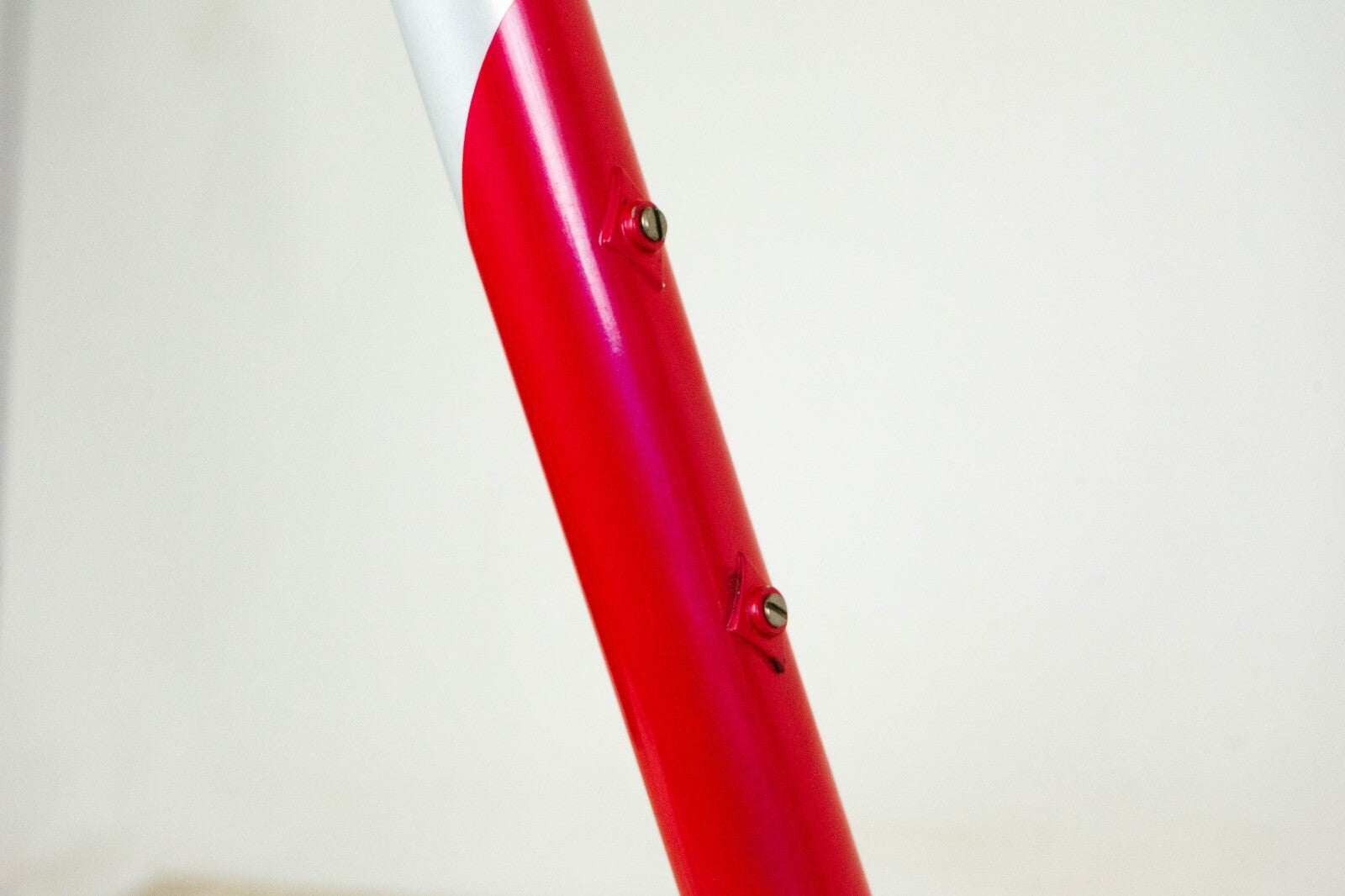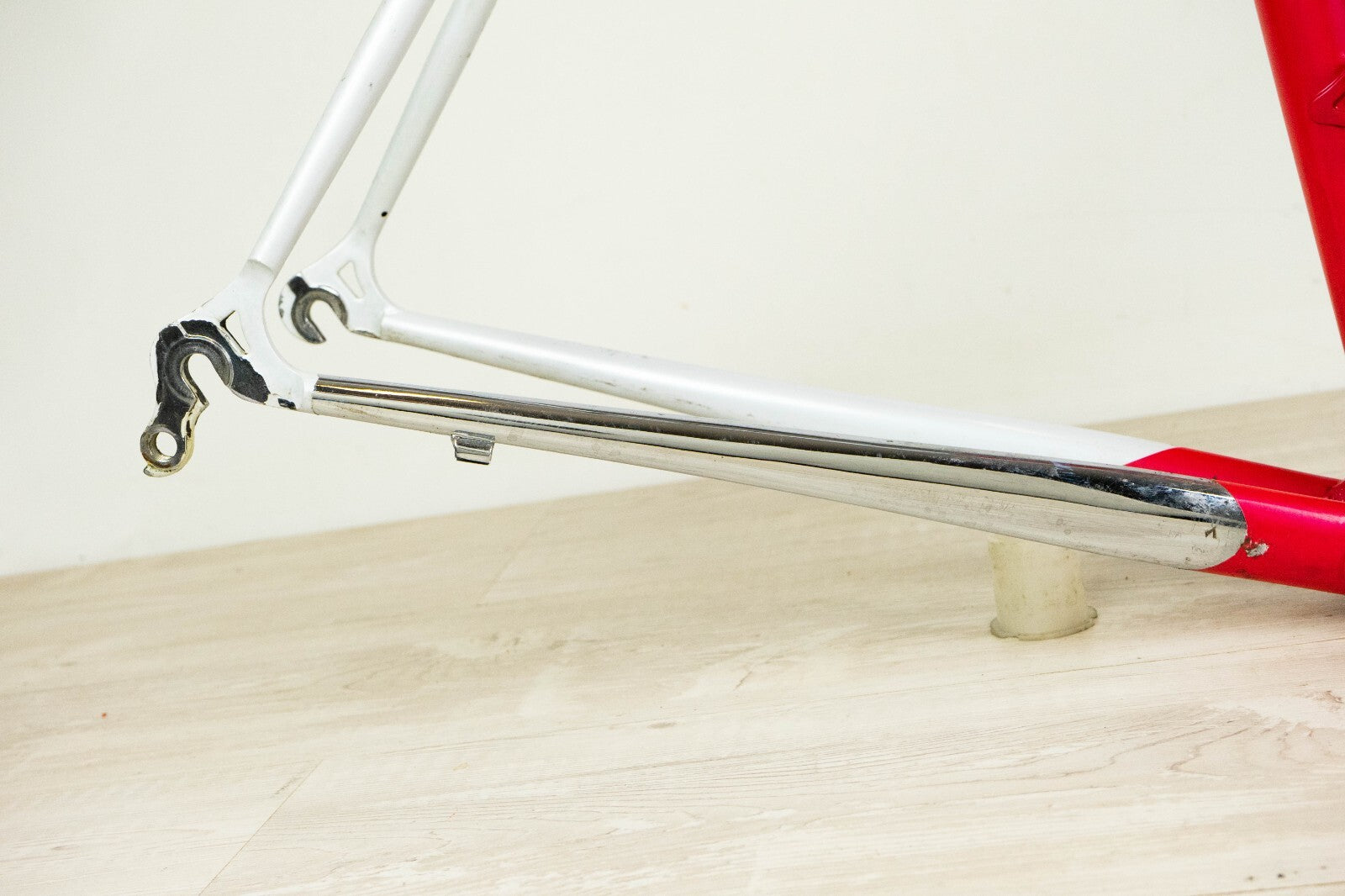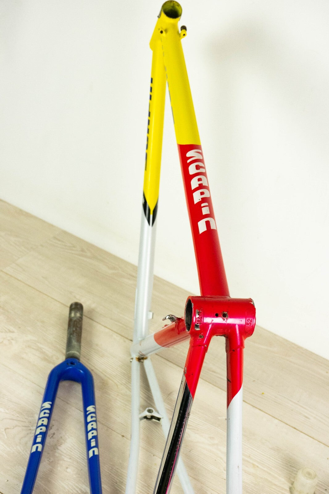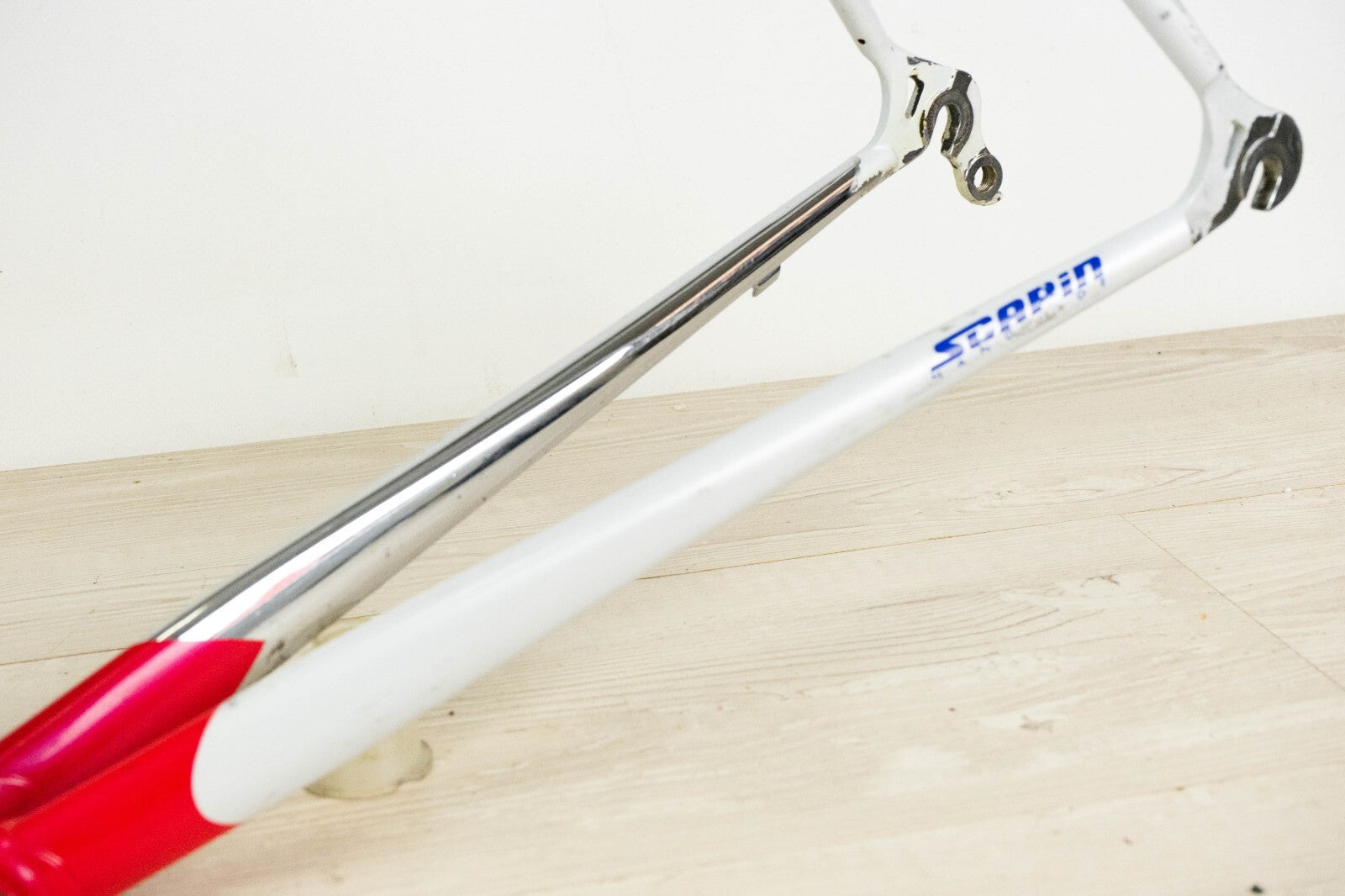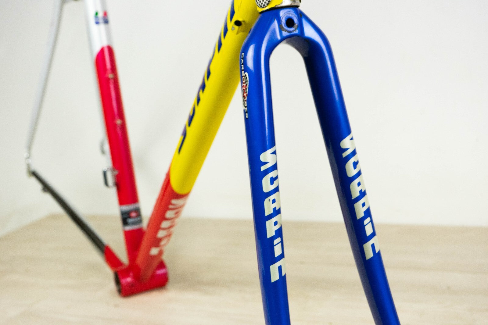 Scapin has made some of the best steel framesets of the 90s starting with the KS-Pro, then the Eos Pro Team then the EOS7 made with the Columbus Ultrafoco tubes, all designed for competitions in search of lightness, reactivity and reliability. The frame builders of these iconic frames were the Barco brothers who laters left the collaboration with Scapin and created their own brand