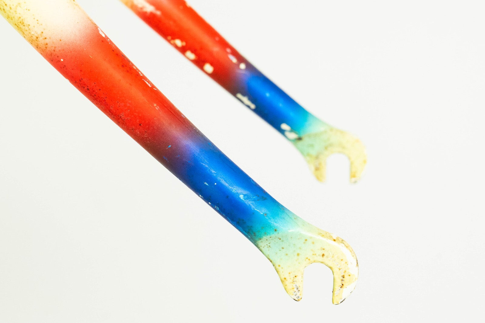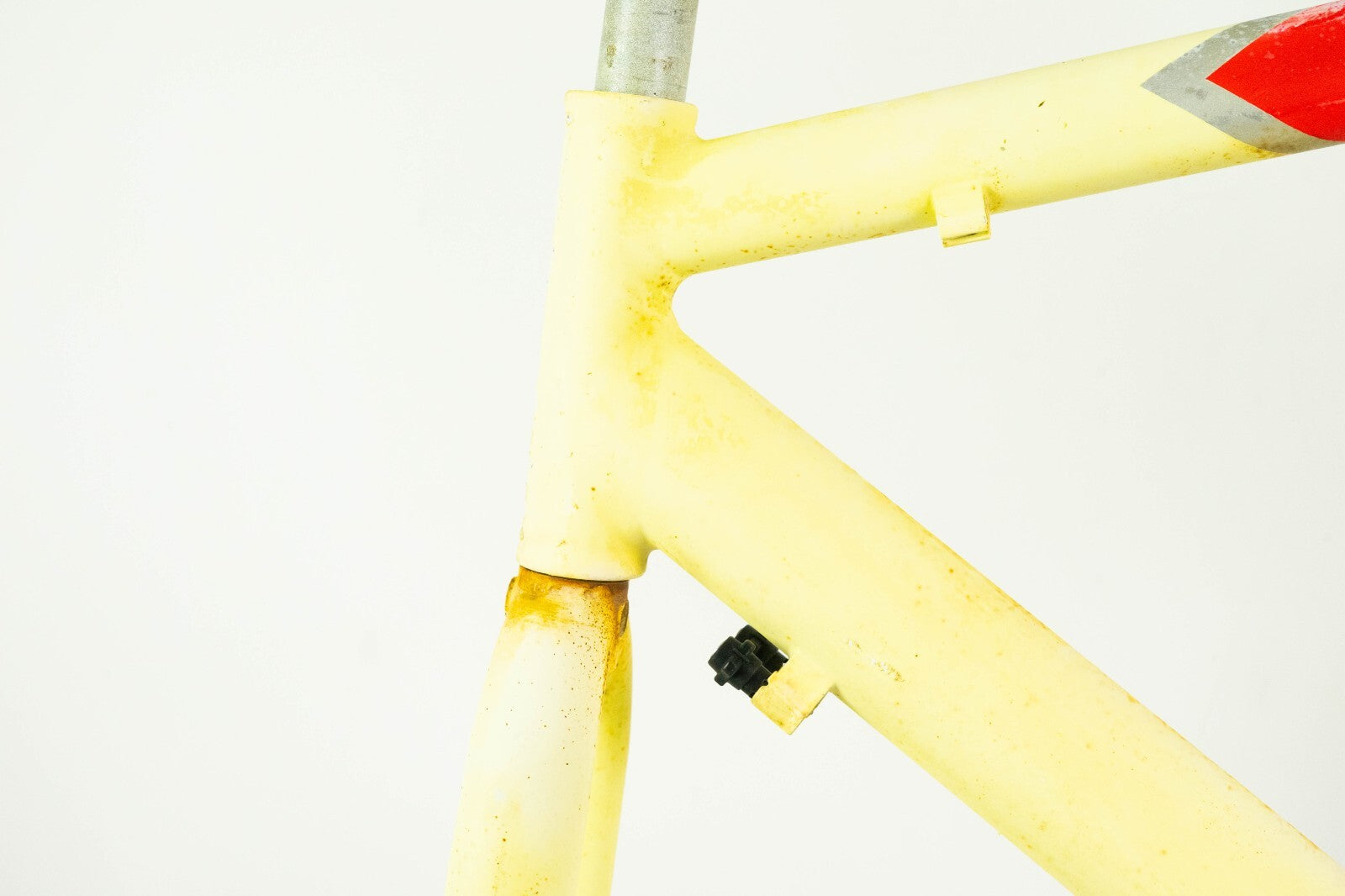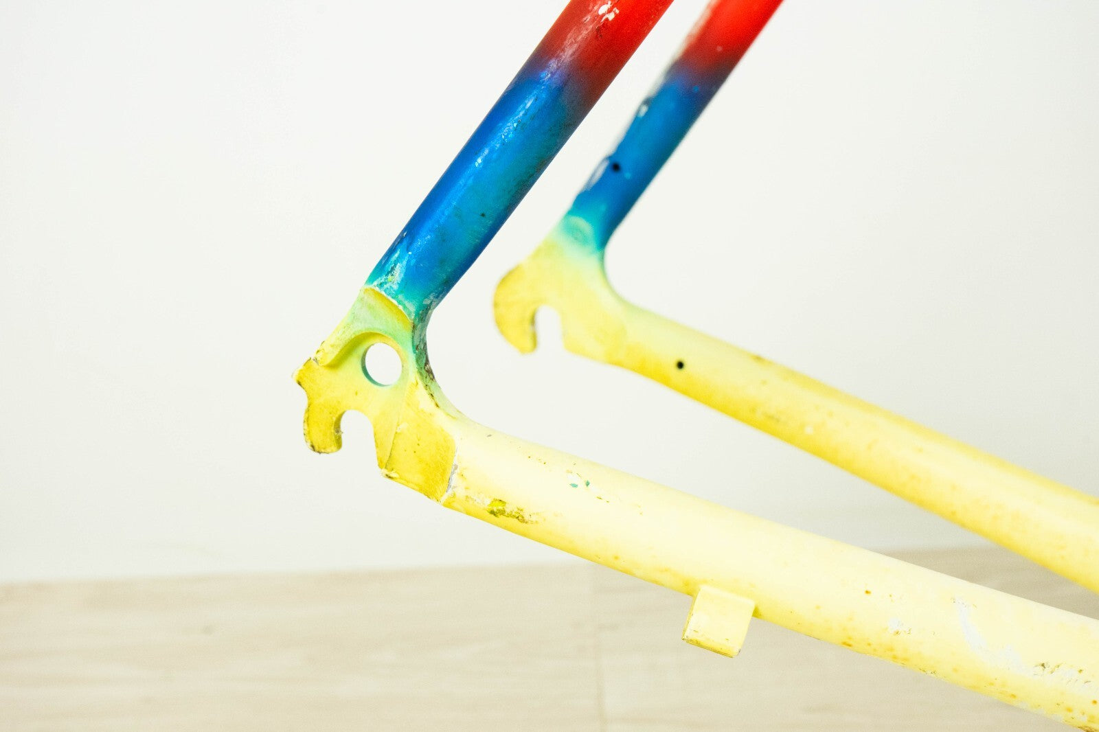 Good structural condition, the painting is ruined and the rear derailleur hanger is missing