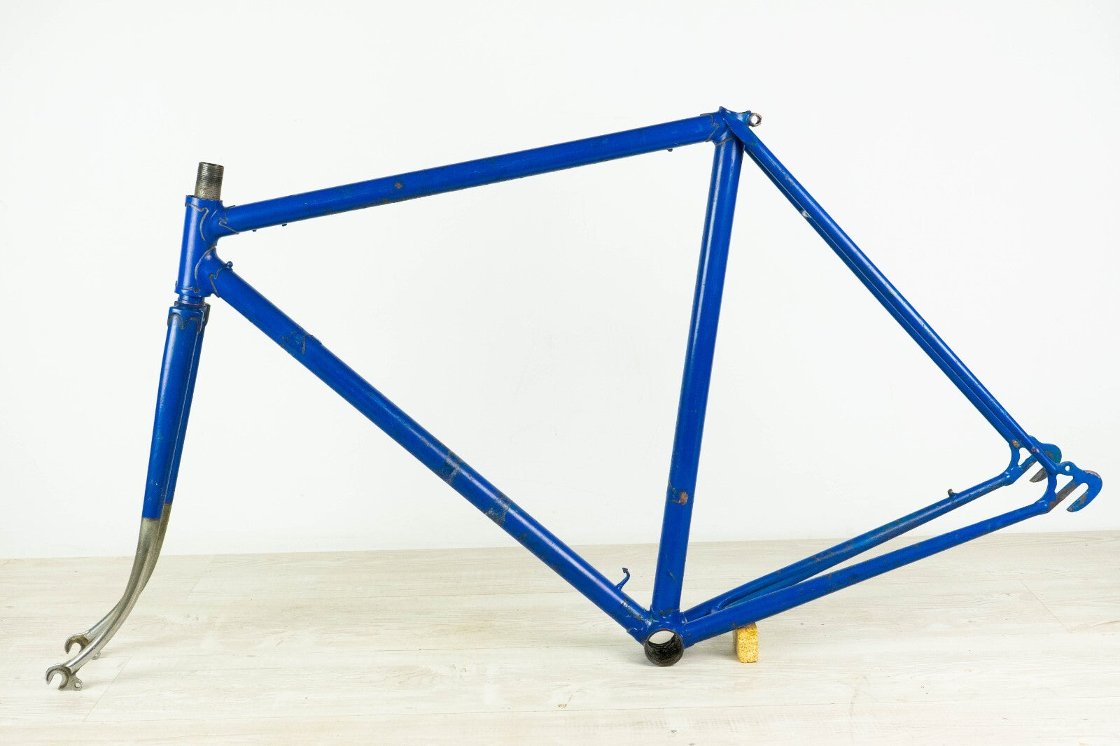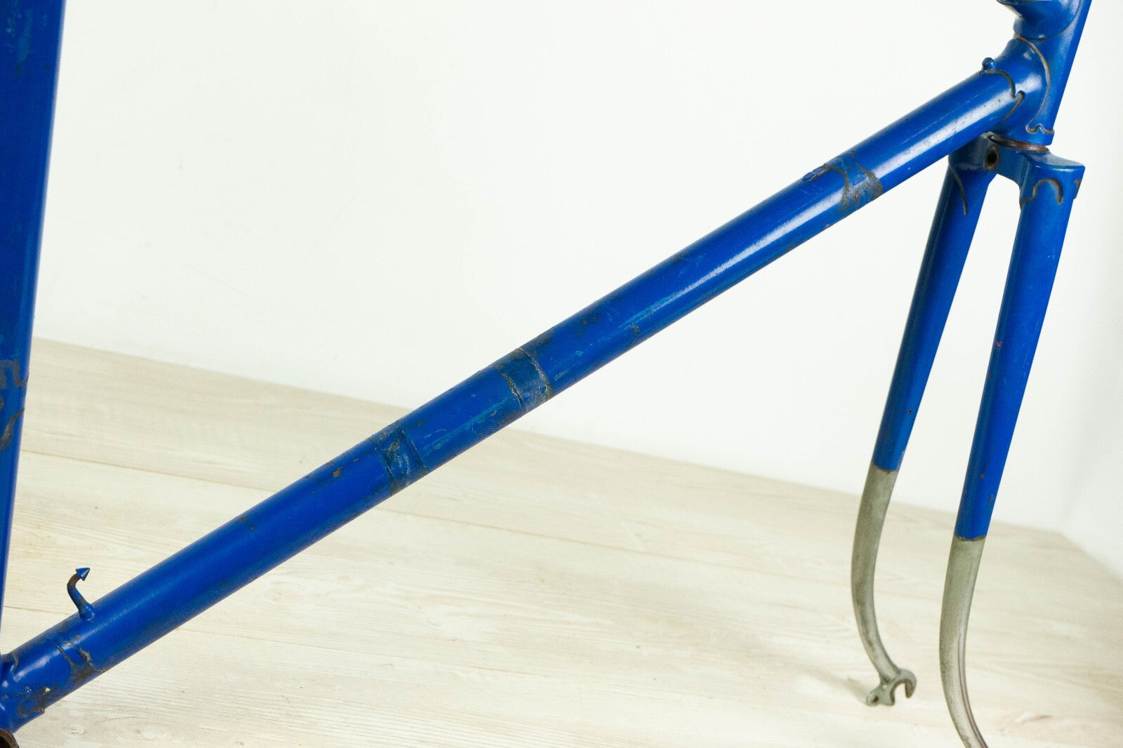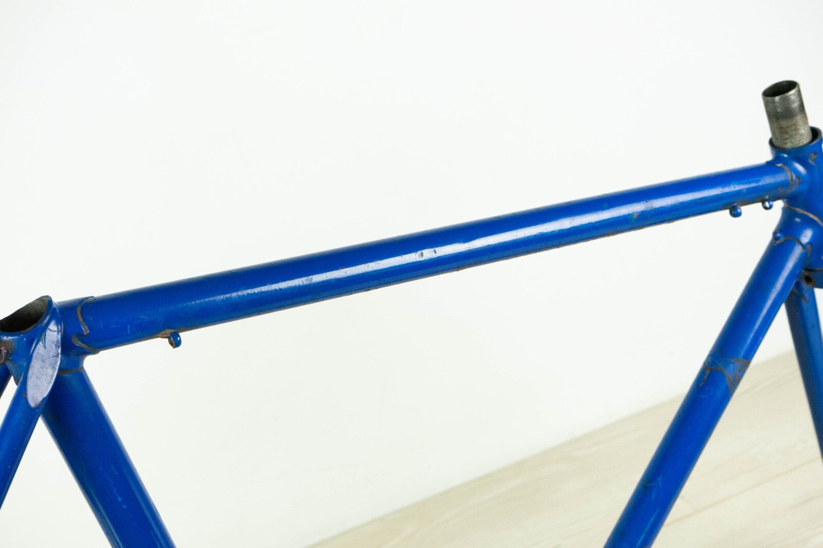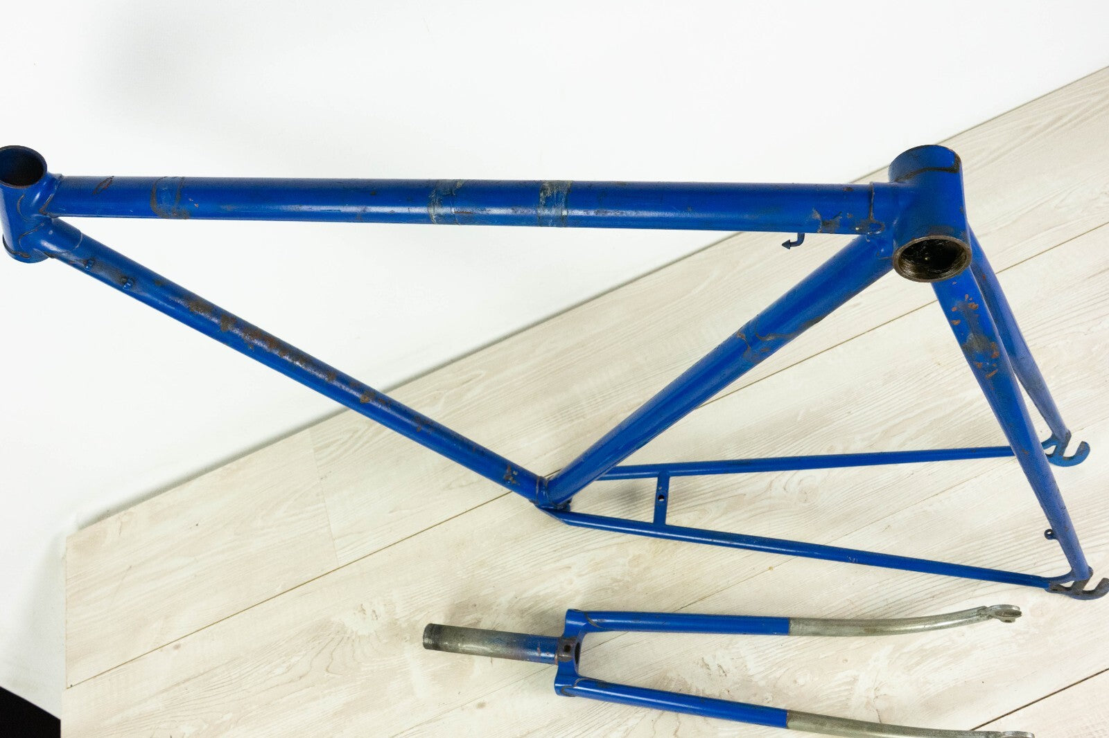 Good condition with some usage marks and superficial rust; there is a very very small wobble under the down tube, visible only with the light in a certain angle, see last pics