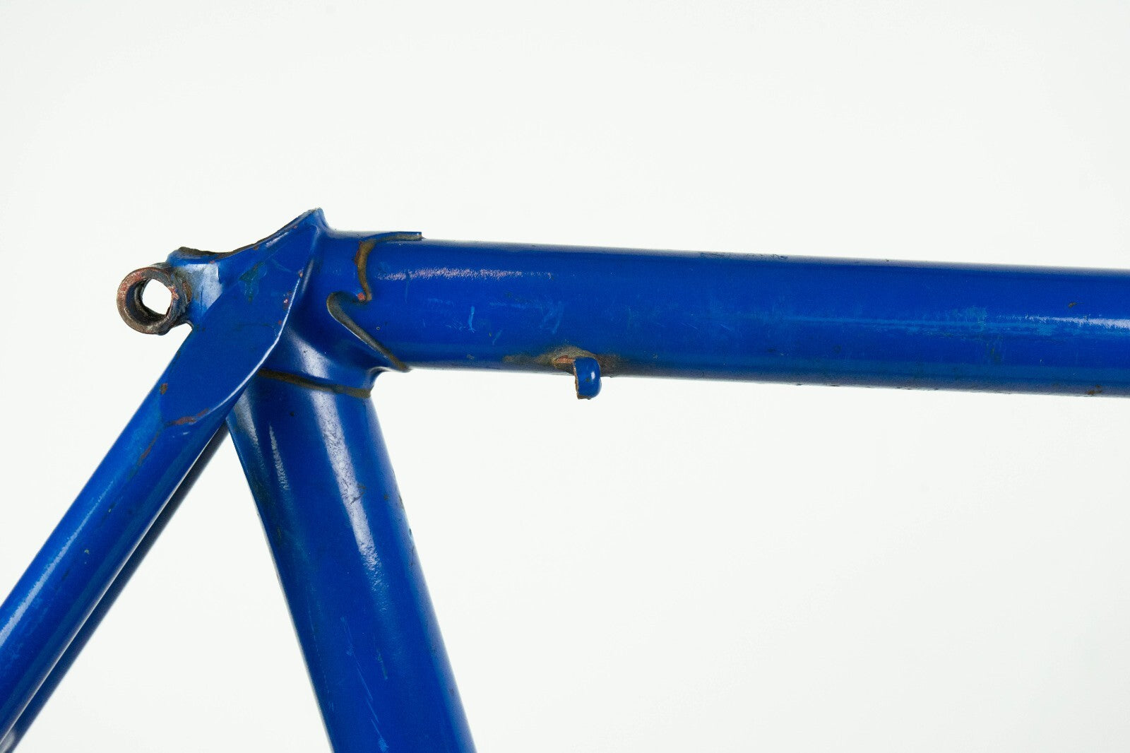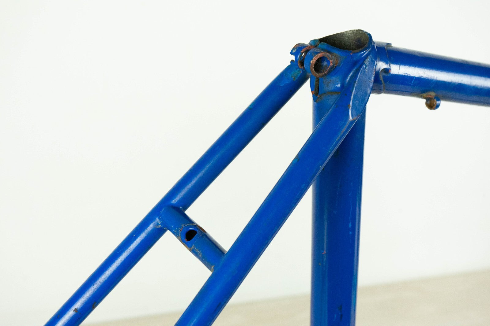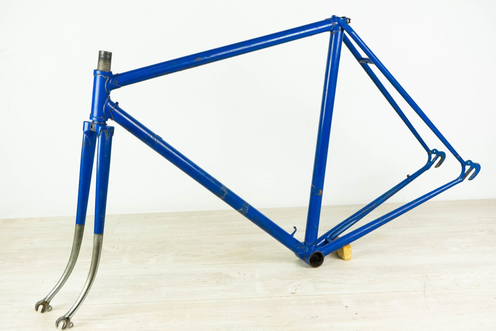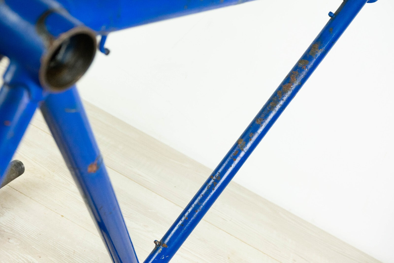 Good condition with some usage marks and superficial rust; there is a very very small wobble under the down tube, visible only with the light in a certain angle, see last pics