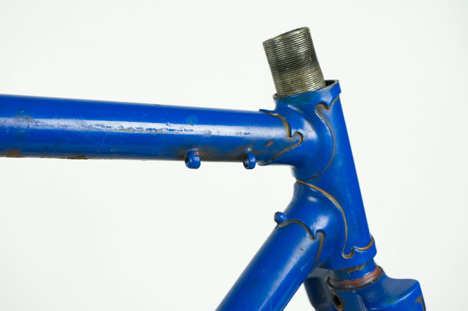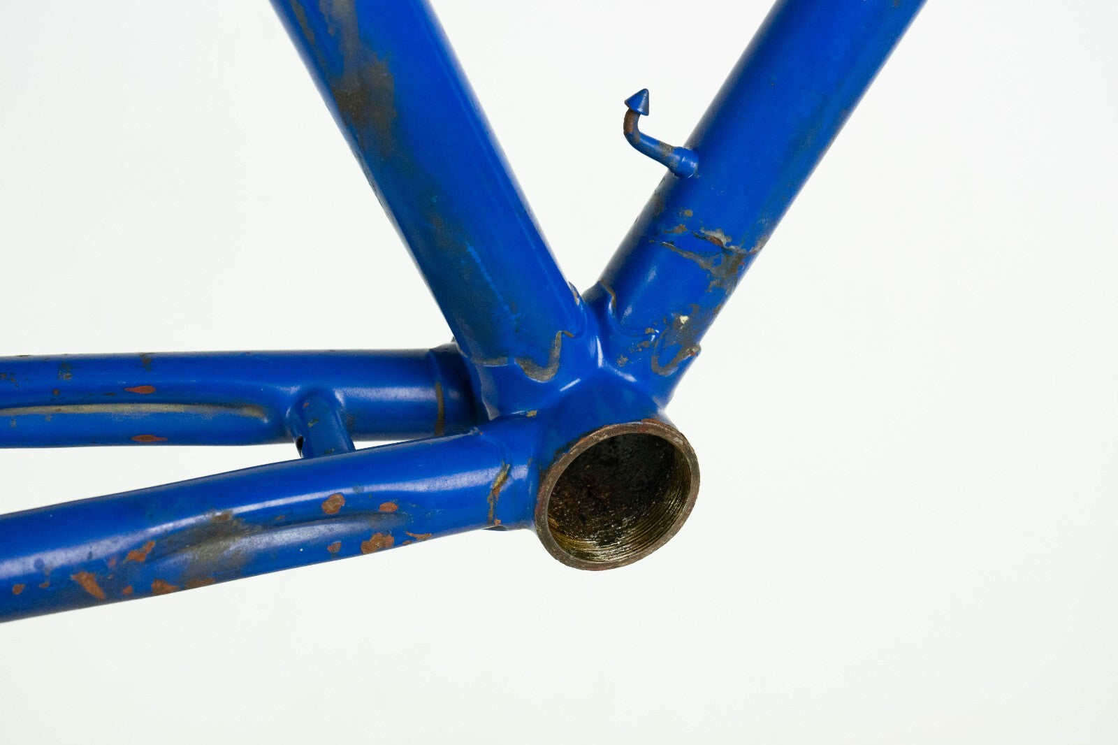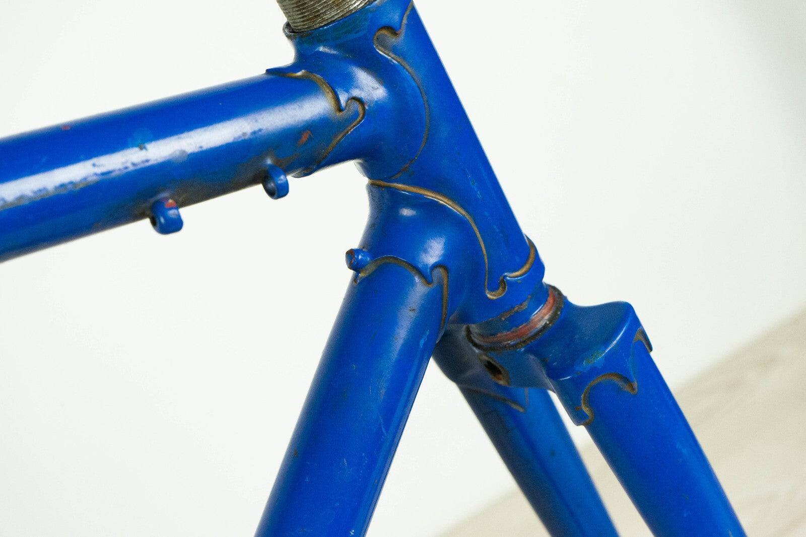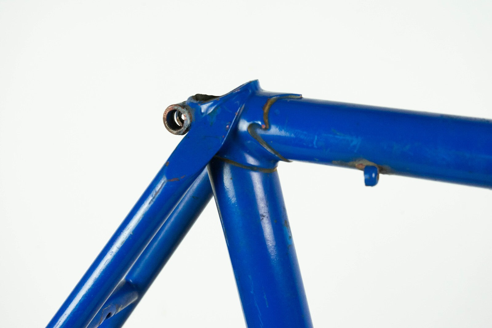 Good condition with some usage marks and superficial rust; there is a very very small wobble under the down tube, visible only with the light in a certain angle, see last pics